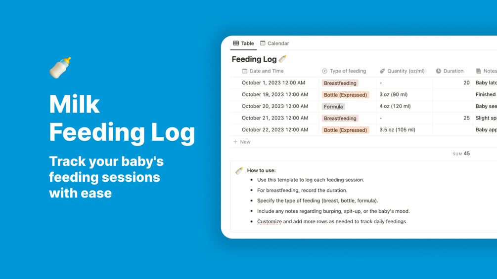Baby Feeding Log Notion Template