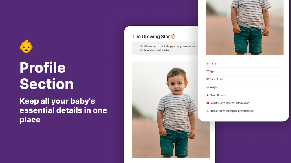 πΆ Profile Section: Create a whimsical and informative baby profile, filled with adorable details.