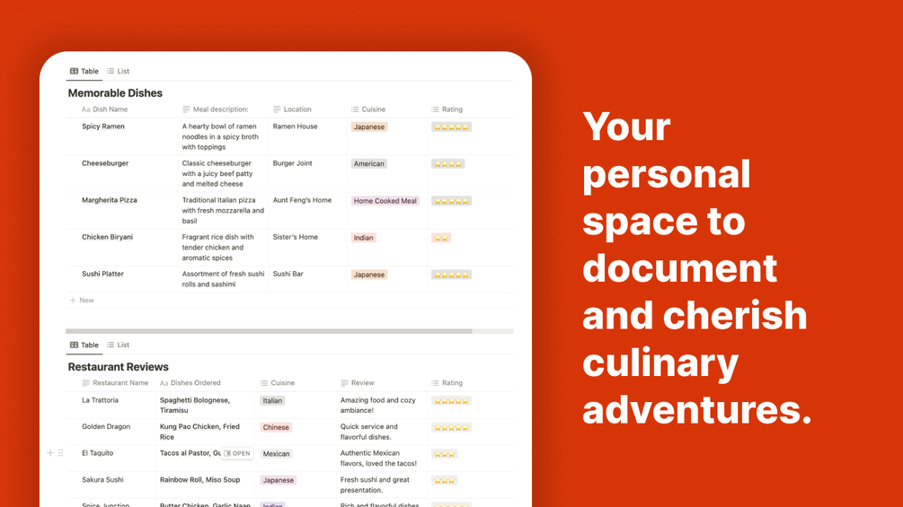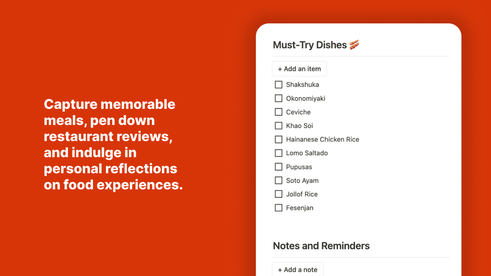 Delicious Diary 🍽️ - Food Journal Notion Template