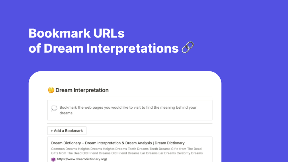 🔗 Bookmark Links to Dream Interpretations: Connect dream symbols or themes to external resources or interpretations for deeper insights and analysis. Expand your understanding of the hidden meanings within your dreams.