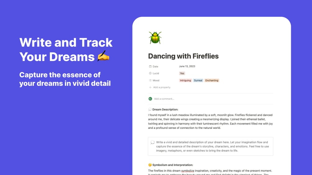 Immerse yourself in a world of wonder, self-discovery, and creativity with this captivating dream journal template. Unveil the hidden realms of your mind and uncover the depths of your subconscious. Begin your dream journaling journey today! ✨