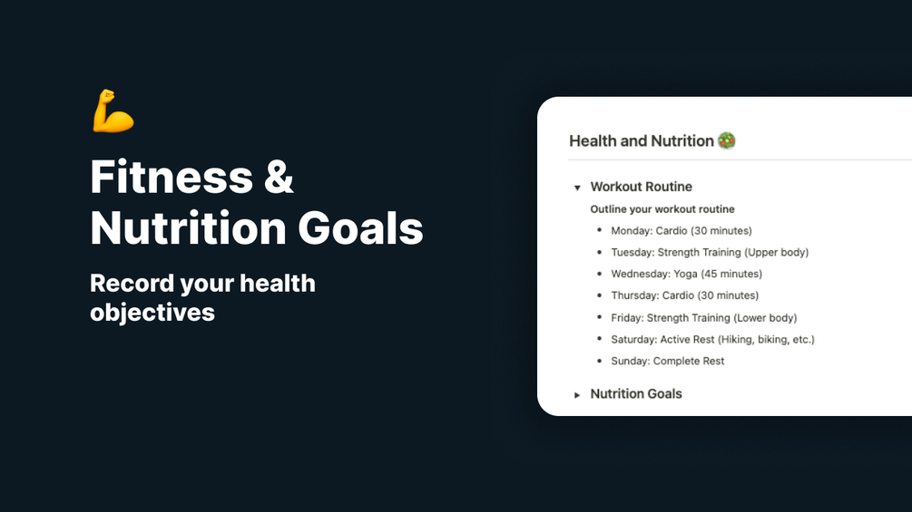 - 💪 Fitness & Nutrition Goals: Tailor-made spaces to record your health objectives, helping you track progress towards a healthier lifestyle.