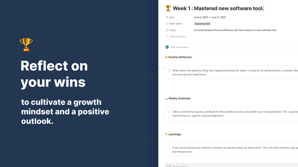 🏆 Reflect on your wins - no matter how big or small, to cultivate a growth mindset and a positive outlook.
